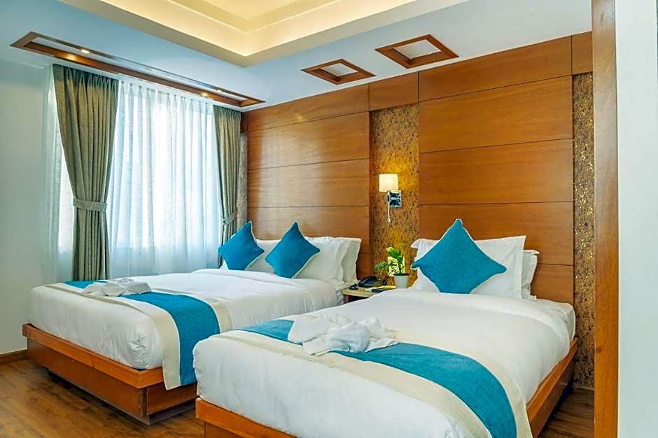 Travelers will enjoy a spa-forward welcome, with wellness packages, a steam room, and a spa and sauna (extra charges), plus a complimentary massage to kick off relaxation. Dining is easy at the on-site Hotel Tradition Restaurant & Bar, offering American, Indian, Italian, and Nepalese fare, while free Wi-Fi keeps devices streaming between bites.